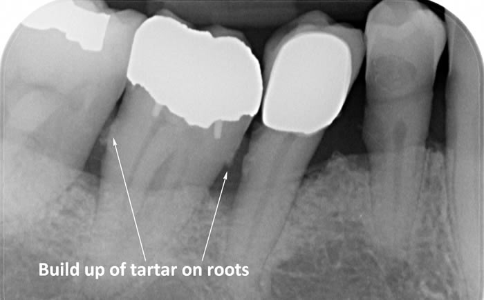 Calculus (tartar) is the hard deposit which forms on the teeth in areas where plaque is left undisturbed. Calculus is too hard to brush off with a toothbrush and needs to be removed by the Dental Hygienist with special scaling instruments.