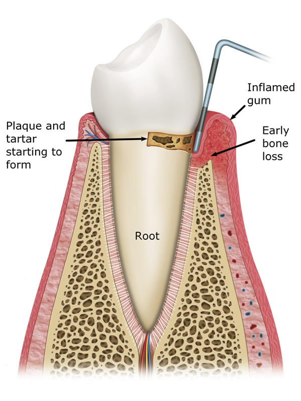 If you have early gum disease your Dentist (or Dental Hygienist, if your Dentist has one) may be able to treat the problem quickly and simply with advice on oral hygiene measures and thorough scaling and polishing.